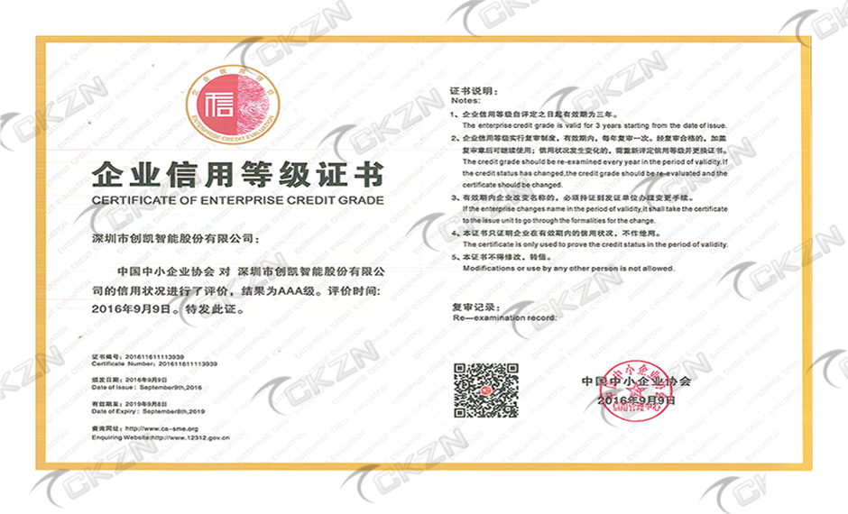 企業信用等級3A證書