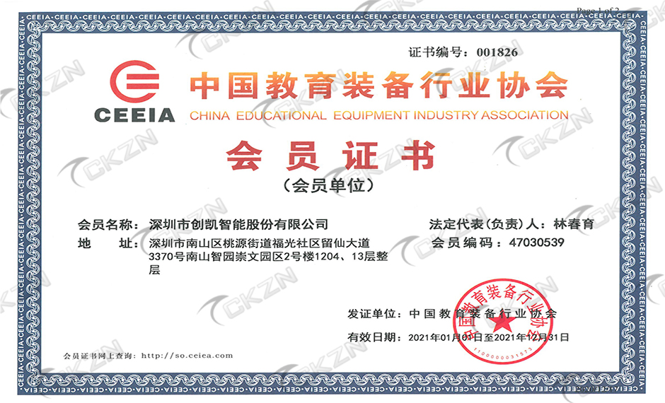 中國教育裝備行業協會會員證書