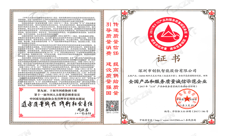 2017年全國產品和服務質量誠信示范企業