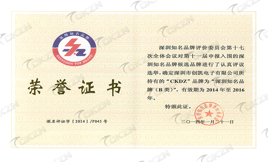 深圳知名品牌榮譽證書