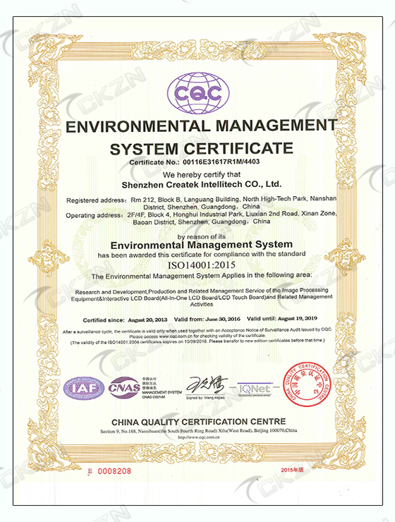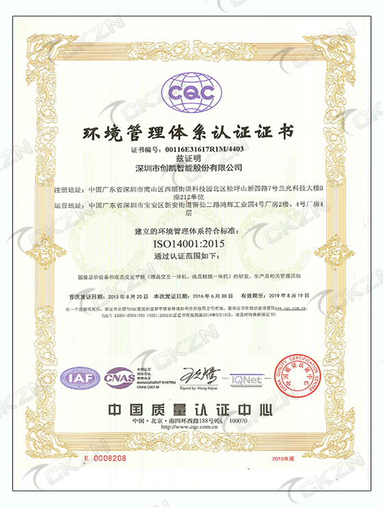 ISO14001中文證書