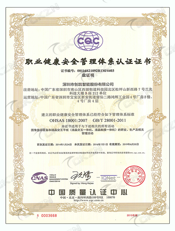 OHSAS18001-IQNET證書