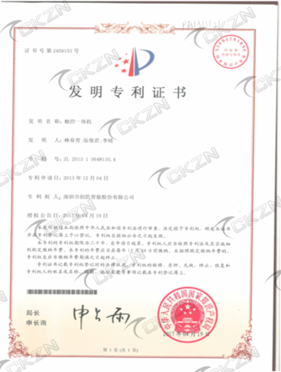 2016一體機I型十環證書