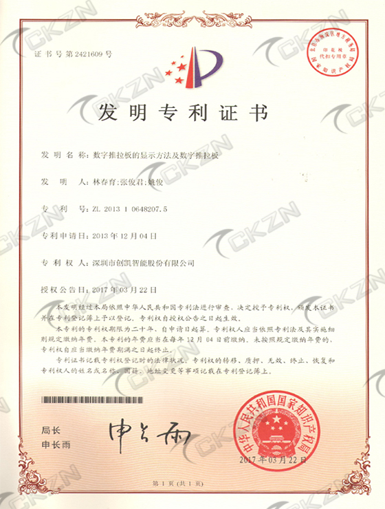 數字推拉板的顯示方法及數字推拉板